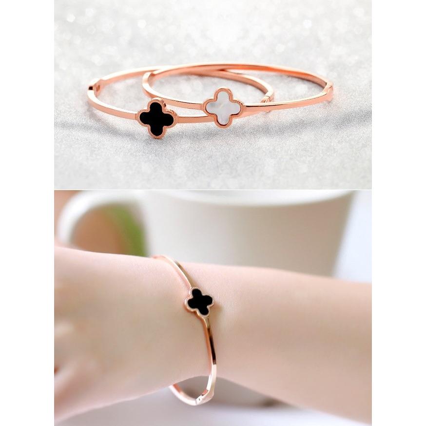 バングル ブレスレット 四葉クローバー ホワイトシェル ブラックオニキス 可愛い ピンクゴールド ギフト クローバー チタンバングル キラキラプラネット 通販 Yahoo ショッピング
